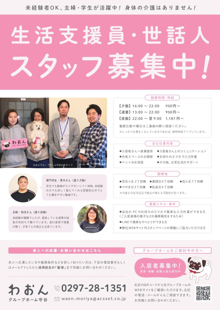 守谷市でグループホーム様より新聞折込のご依頼を頂きました!求人募集のご案内