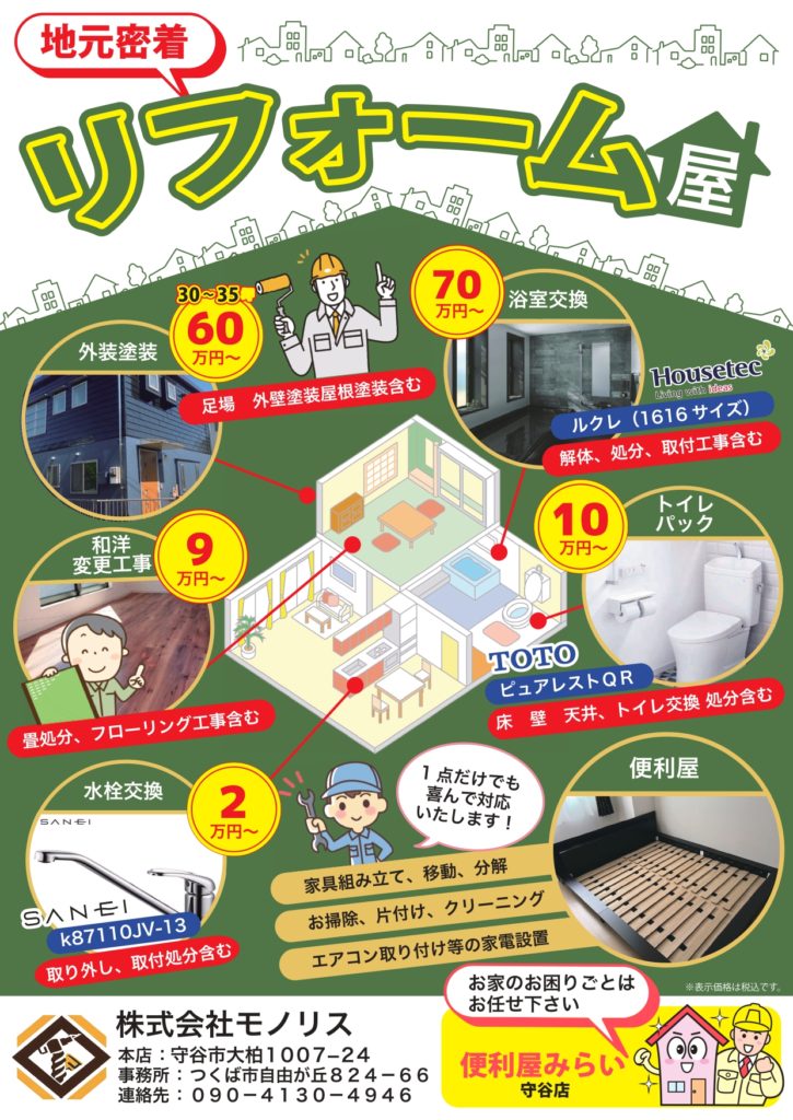 守谷市でリフォーム会社様より新聞折込のご依頼を頂きました!サービスのご案内